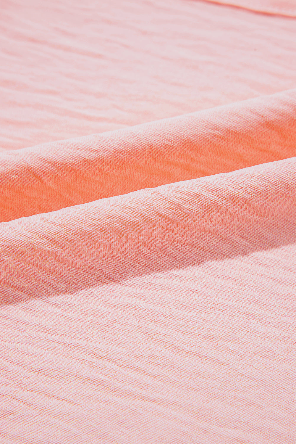 Pink Textured Half Sleeve V Neck Plus Size T Shirt with Chest Pocket