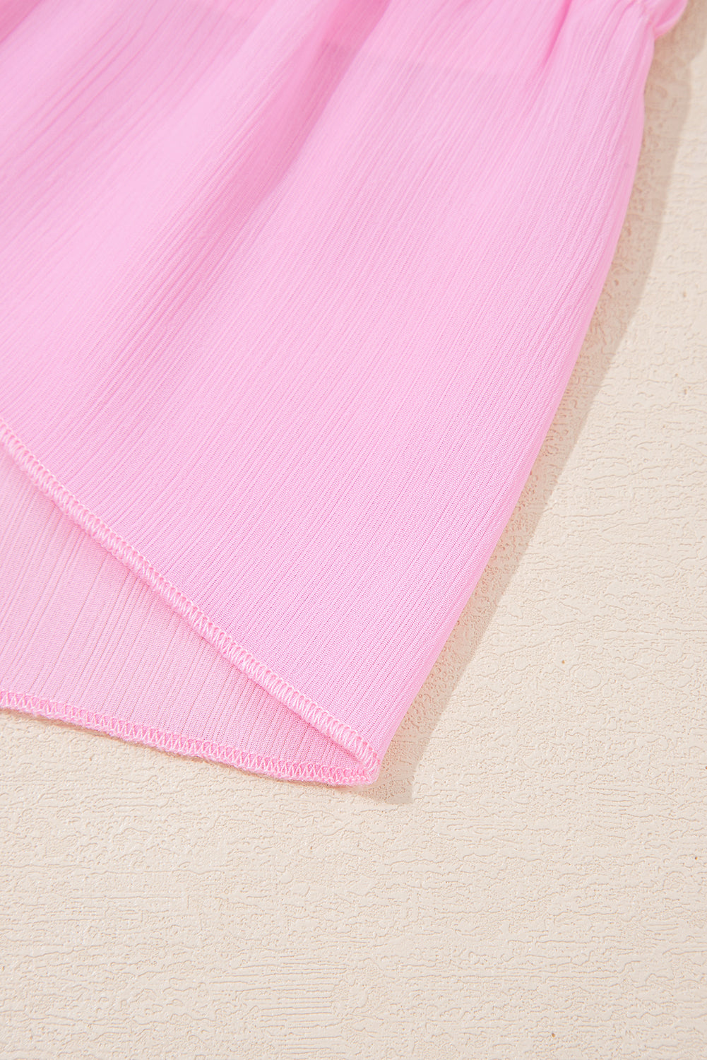 Pink Tiered Ruffle Ribbed Crew Neck Pullover Plus Size Top