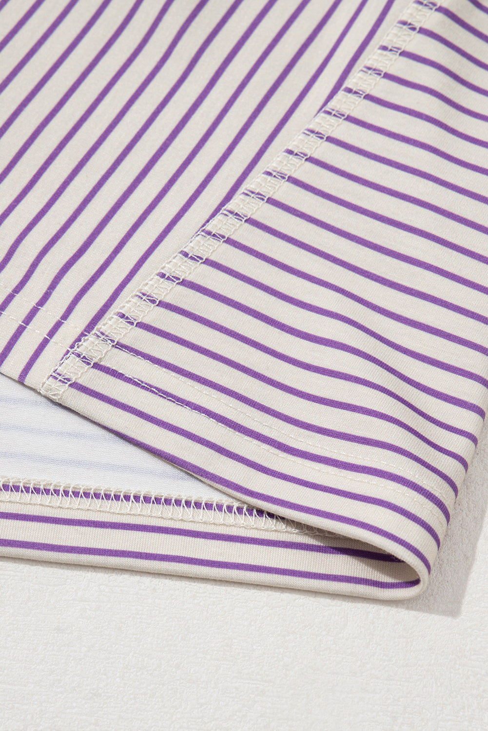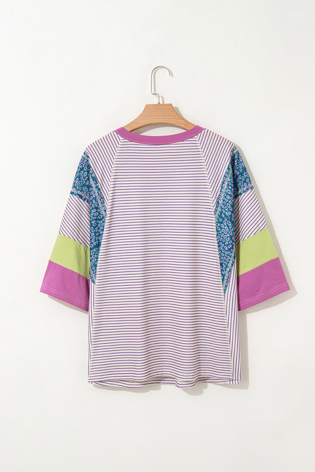 Purple Stripe Floral Color Block Raw Edge Patchwork Bracelet Sleeve Blouse
