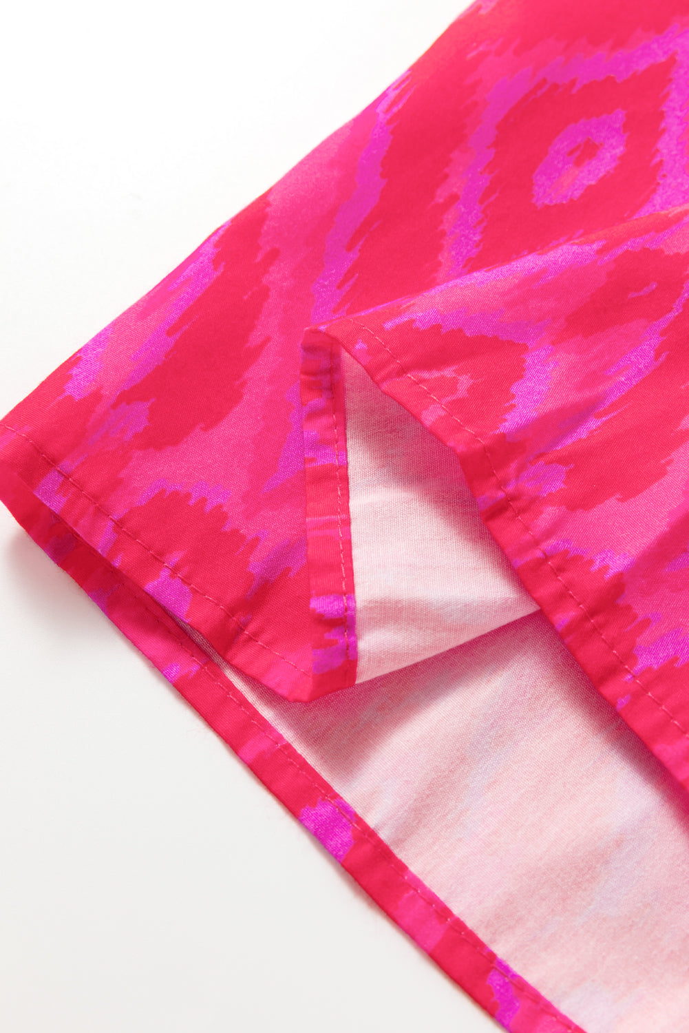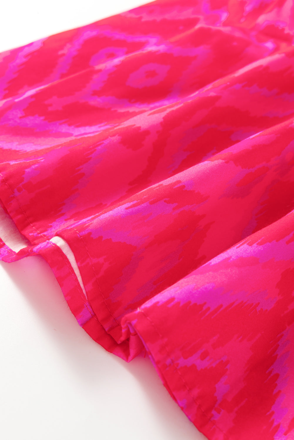 Red Allover Print Contrast Split Neckline Short Puff Sleeve Curvy Dress