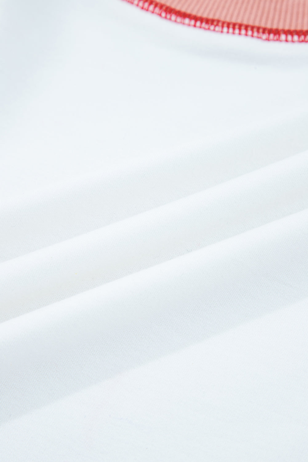 Red Stripe Colorblock Patchwork Contrast Stitching Oversize Sweatshirt
