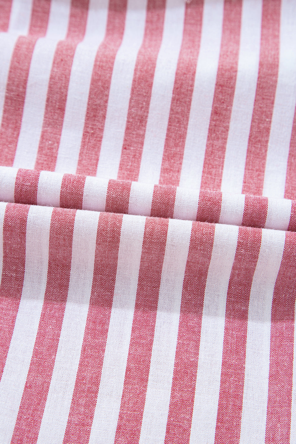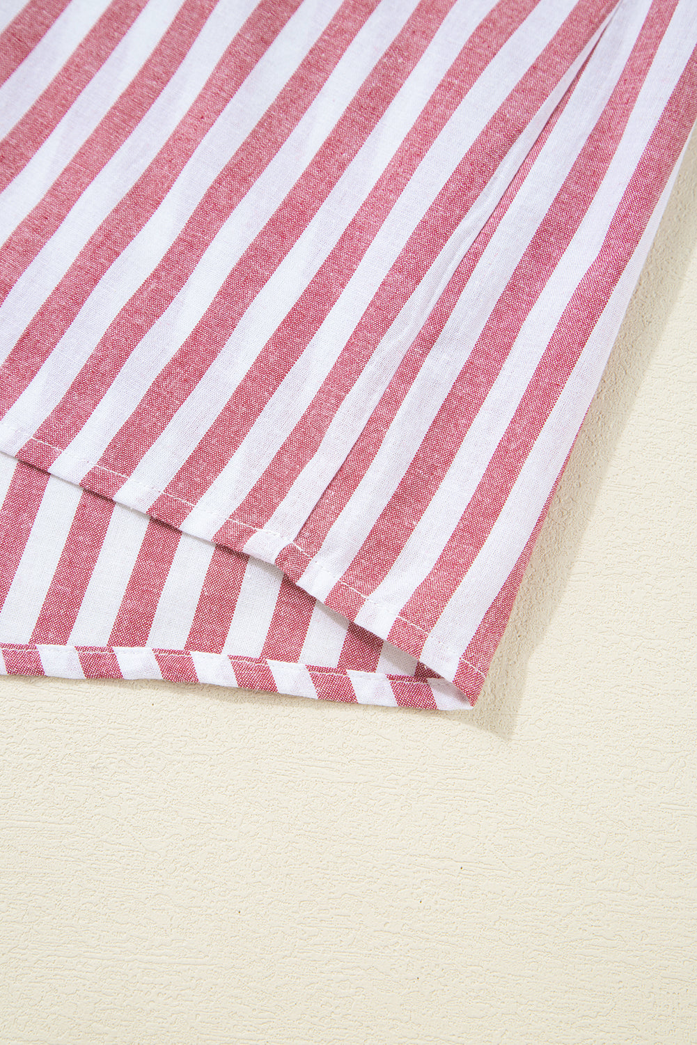 Red Stripe Plus Size Floral Embroidered Petal Sleeve Blouse