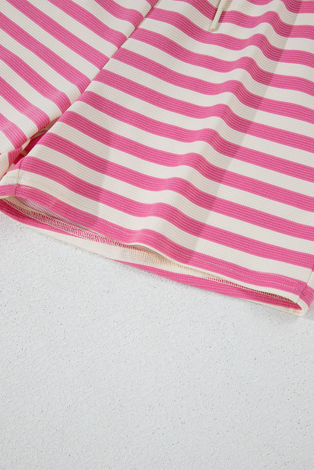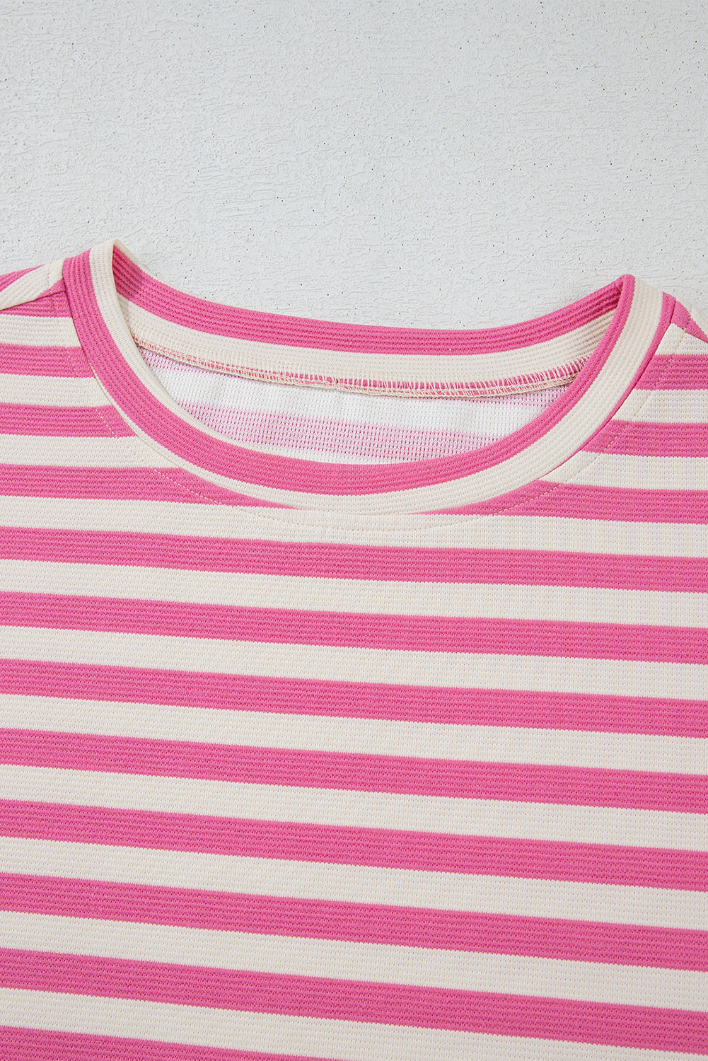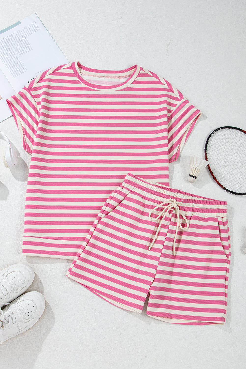 Rose Stripe Crew Neck T Shirt and Drawstring Shorts Set