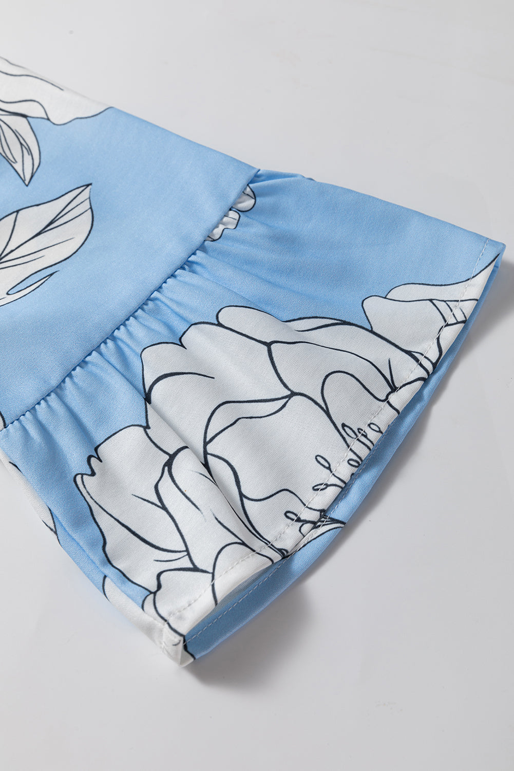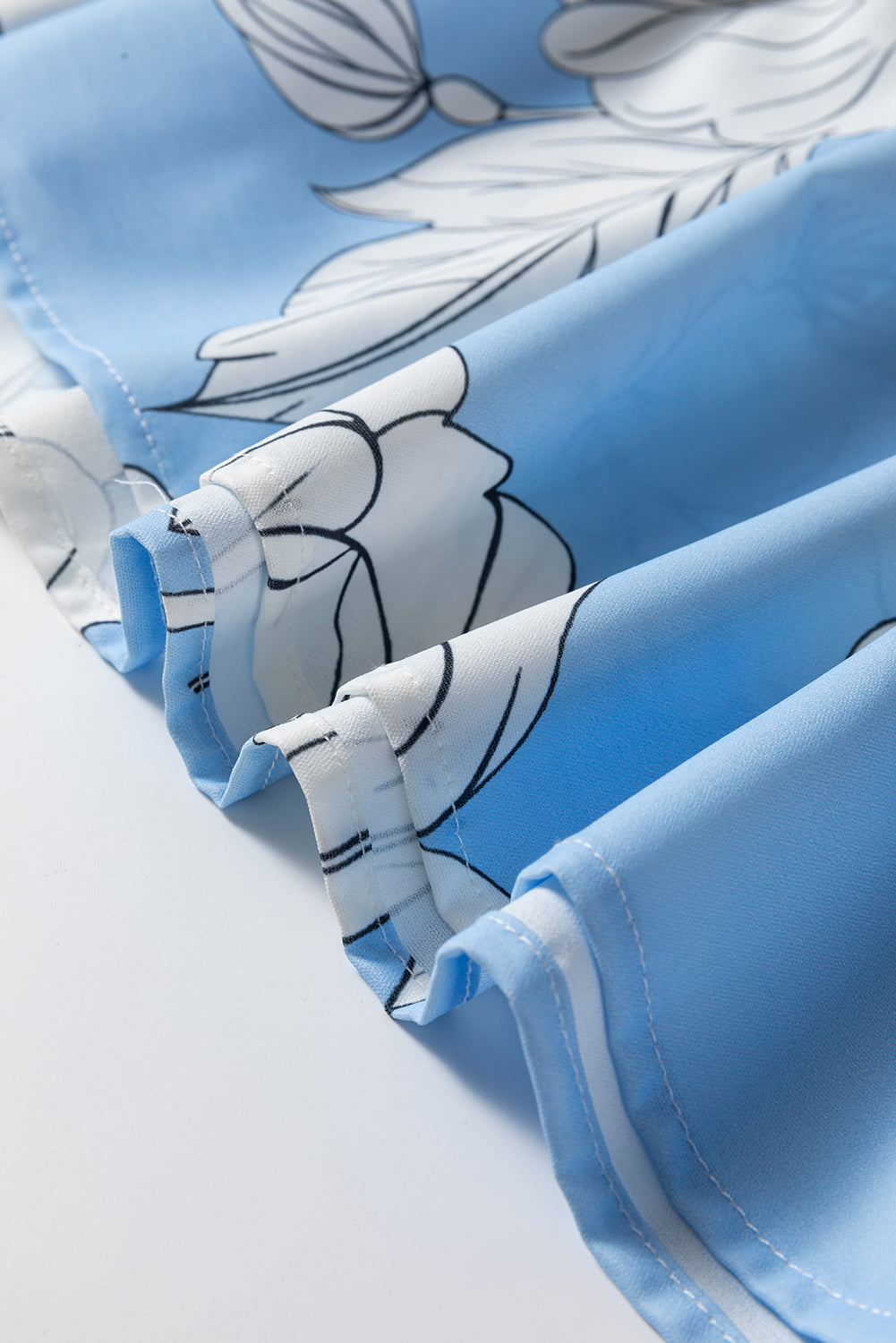 Sky Blue Floral Bracelet Sleeve V Neck Plus Size Tiered Maxi Dress