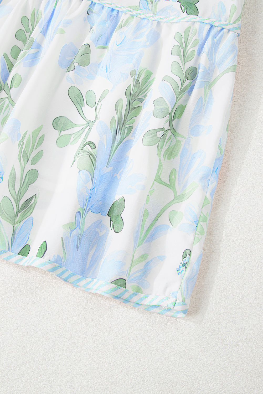 Sky Blue Floral Contrast Edge Layered Short Sleeve Mini Dress