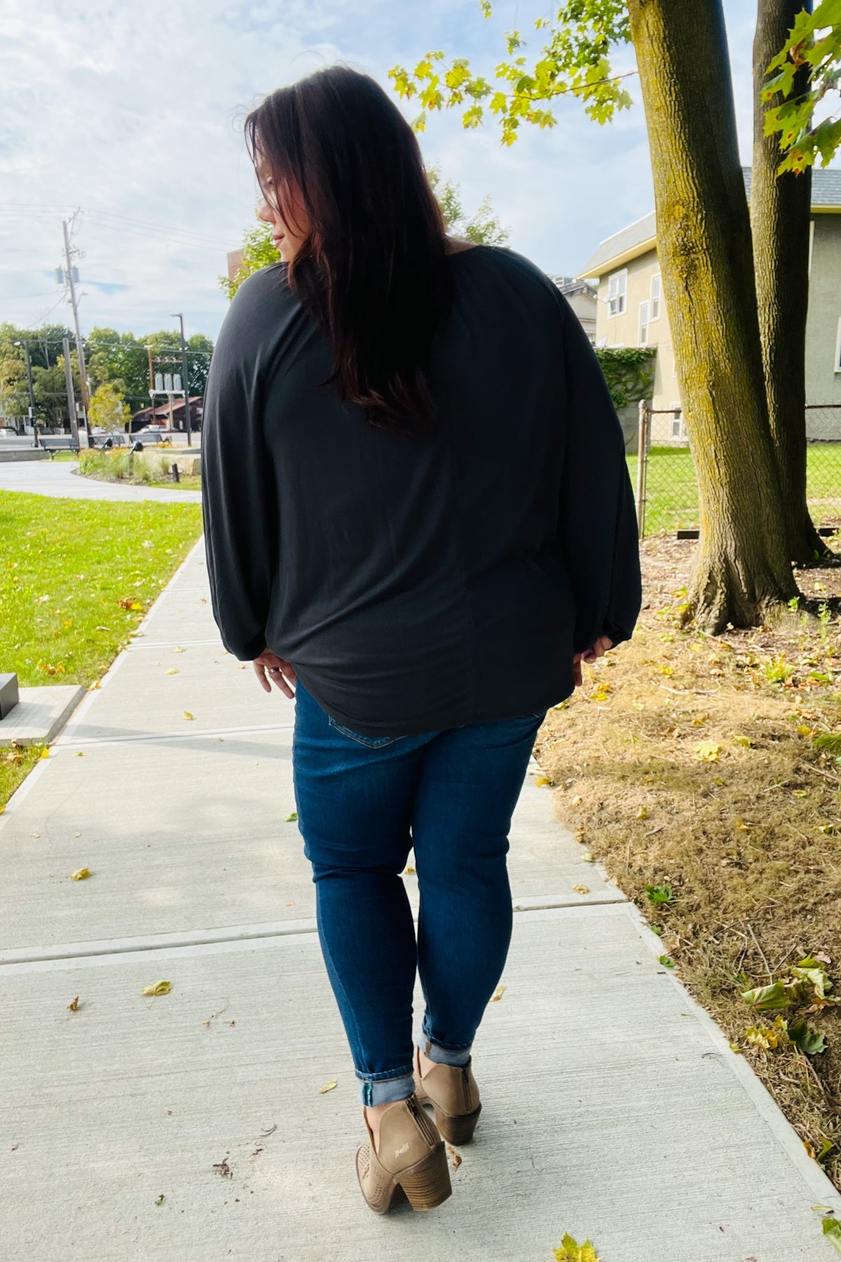 Versatile Charcoal Front Tie Modal Knit Peasant Top