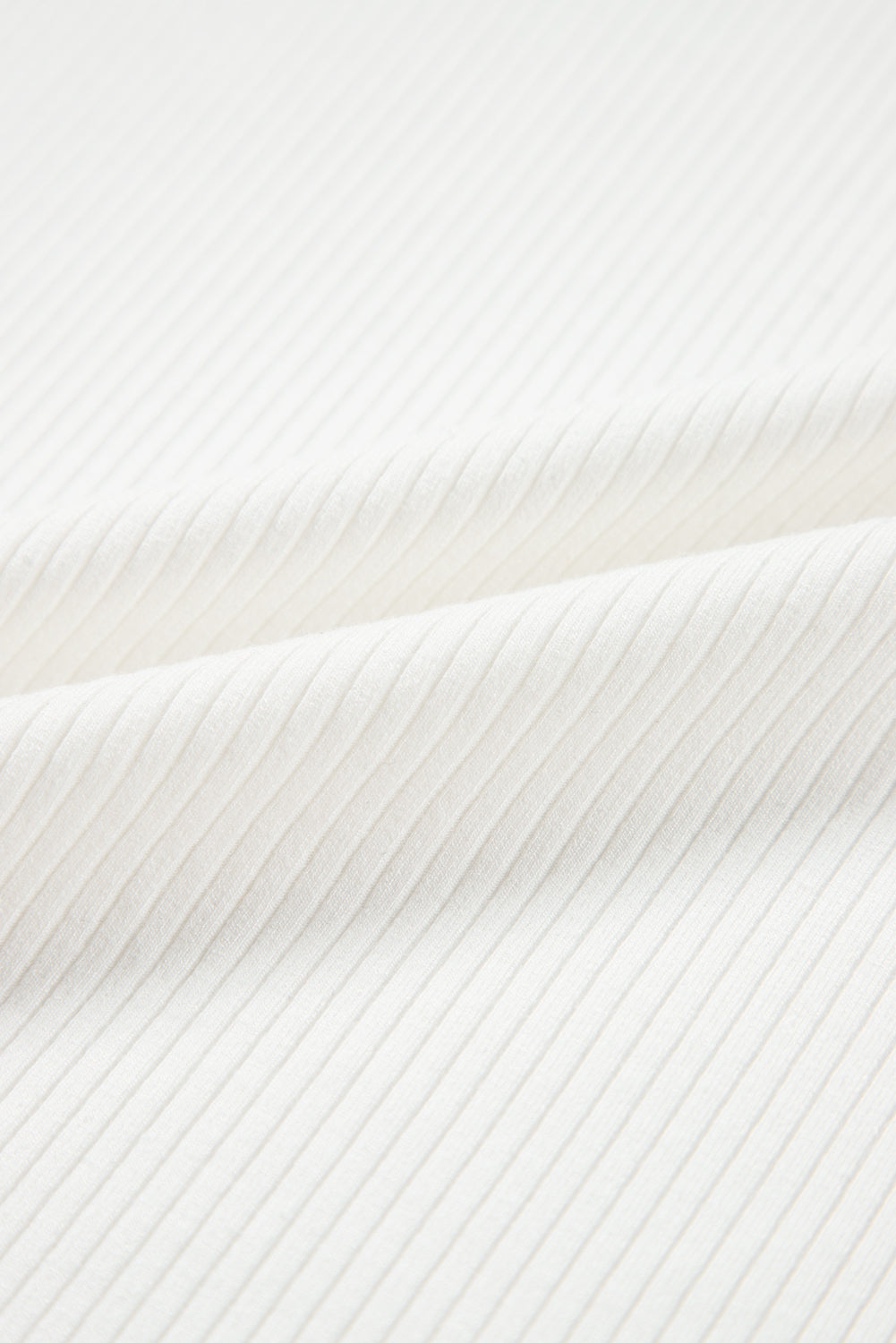 White Eyelet Pattern Short Sleeve Patchwork Ribbed Top