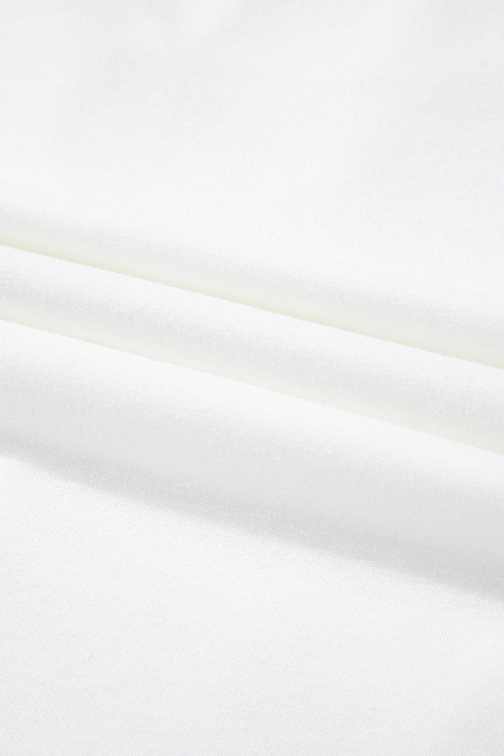 White Floral Applique Notched V Neck Dolman Sleeve Top