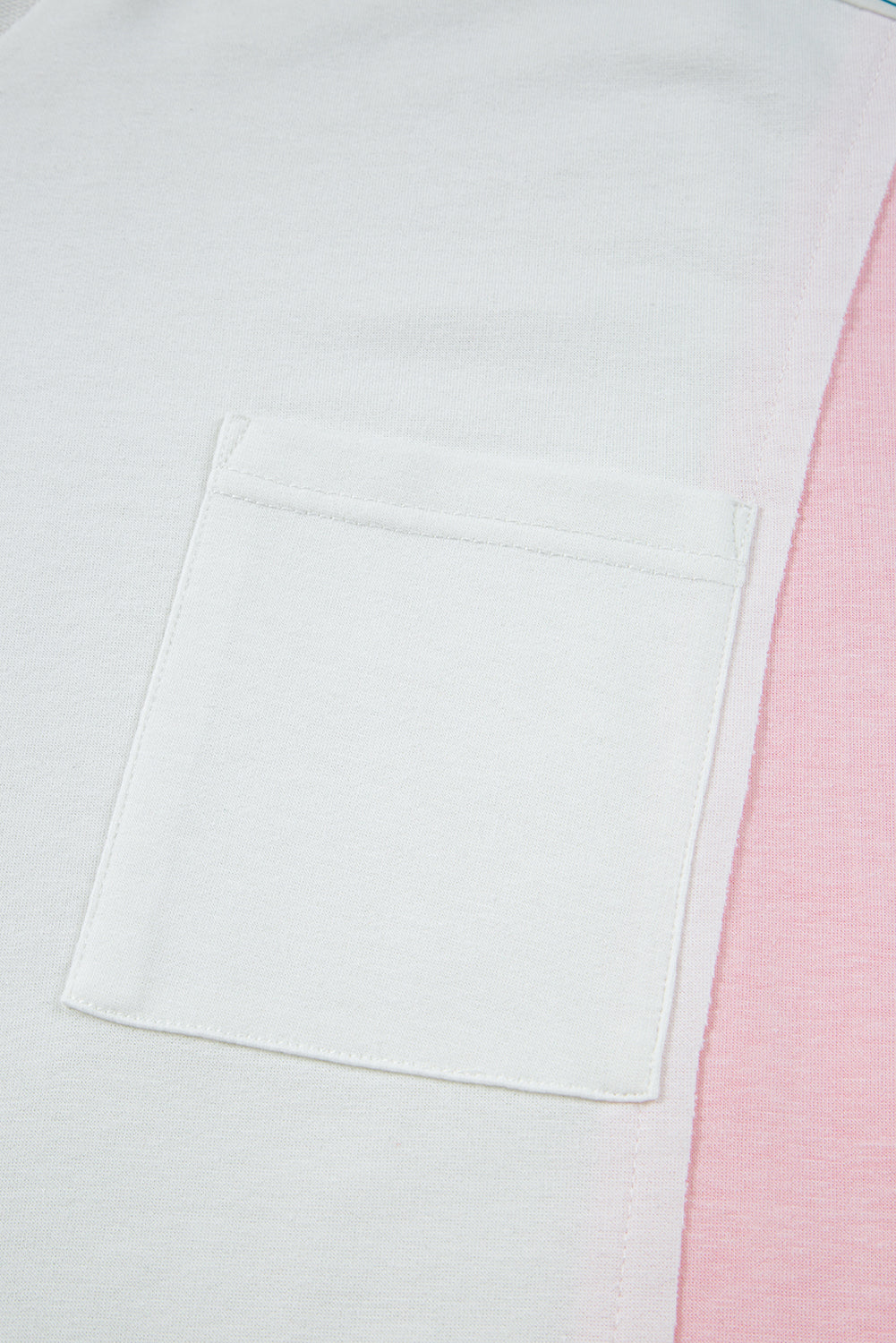 White Floral Colorblock Patchwork Chest Pocket Notched Neck Long Sleeve Top