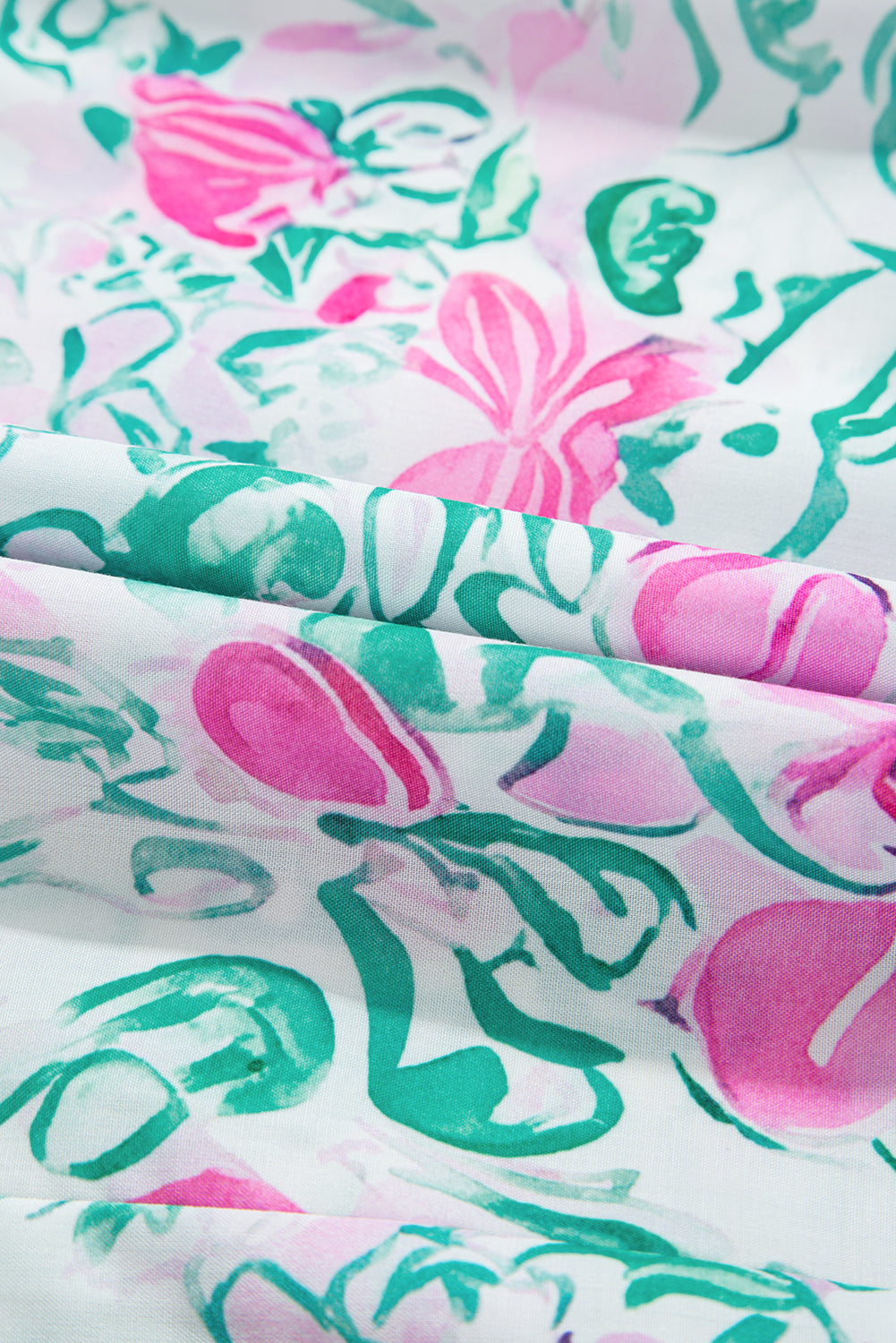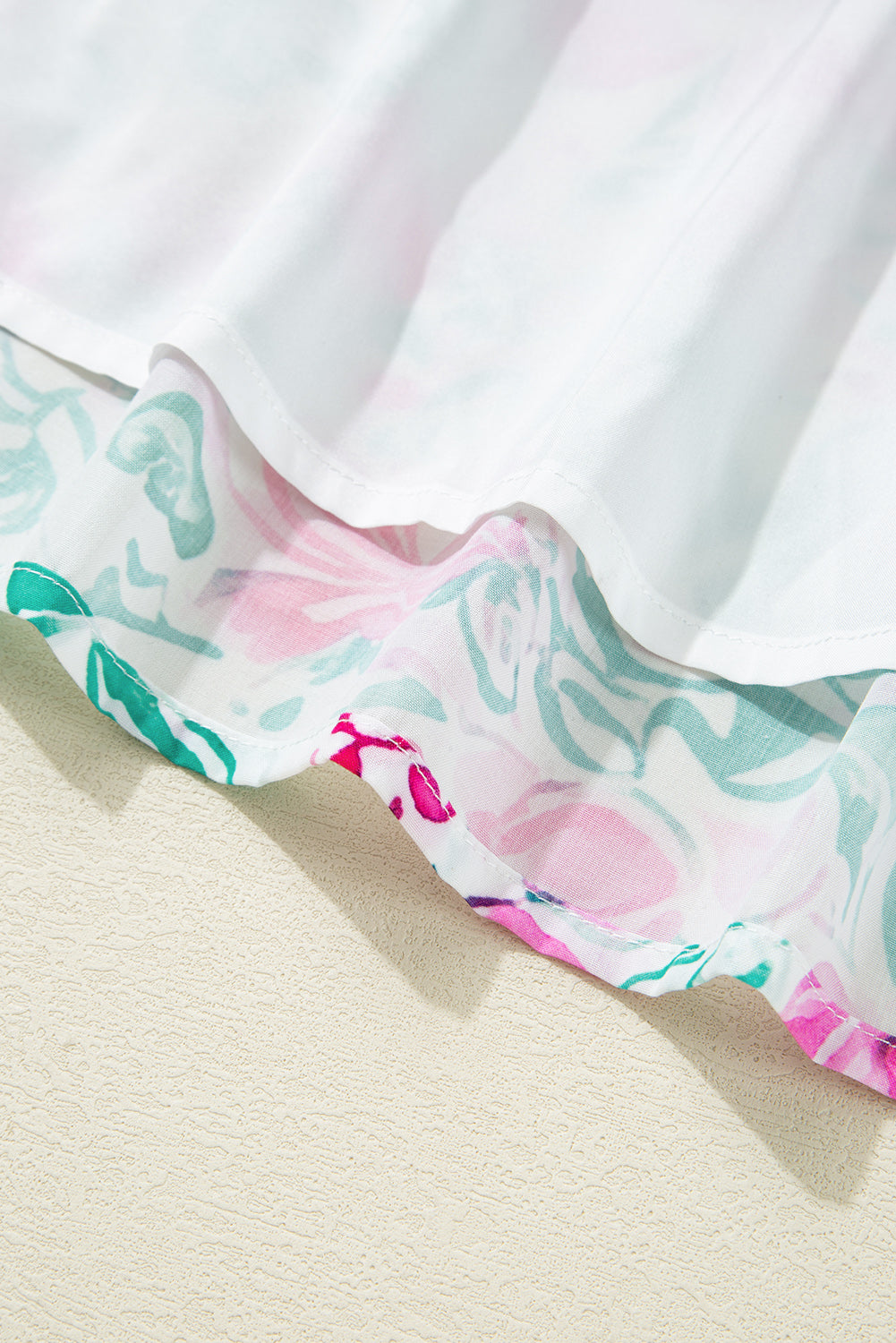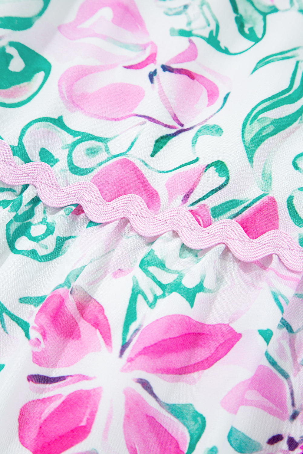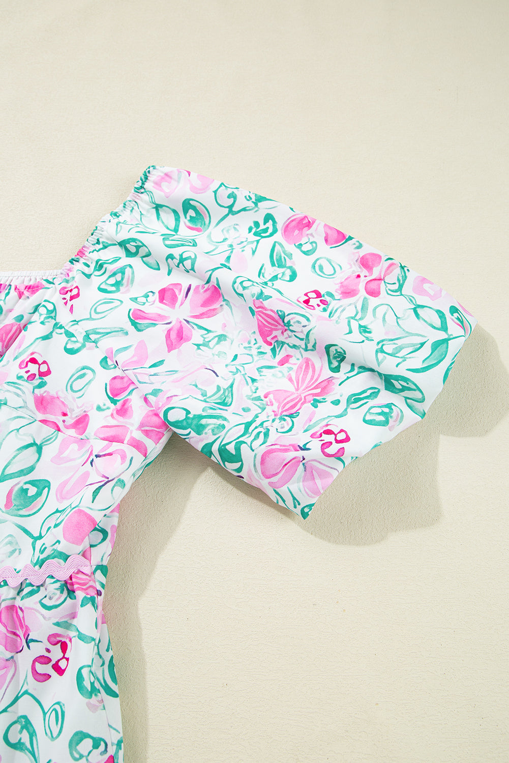 White Floral Print Ric-rac Trim Square Neck Plus Size Mini Dress