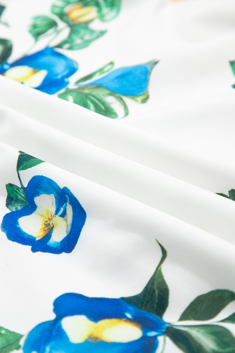 White Plus Size Floral Short Puff Sleeve Contrast Tie V Neck Dress