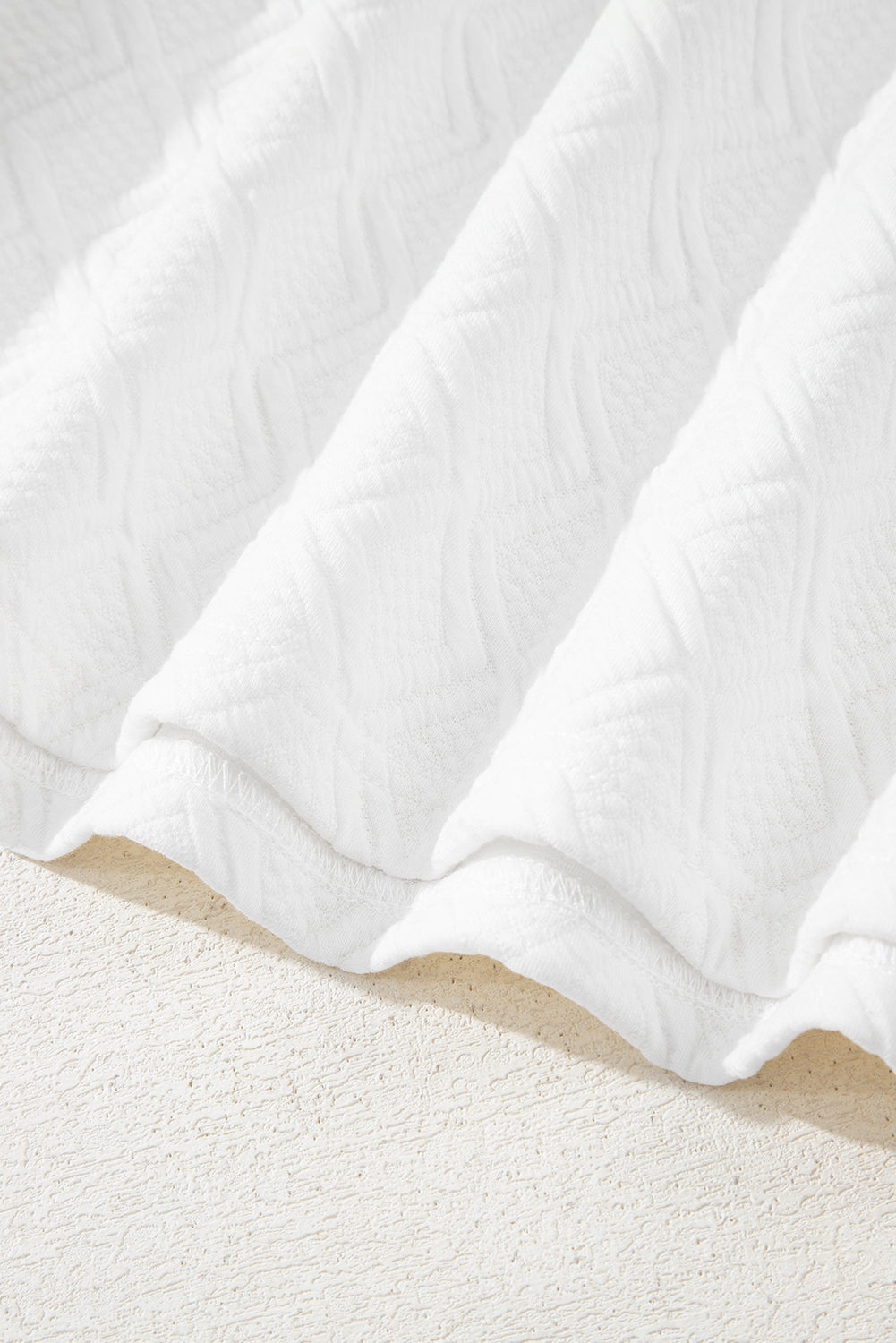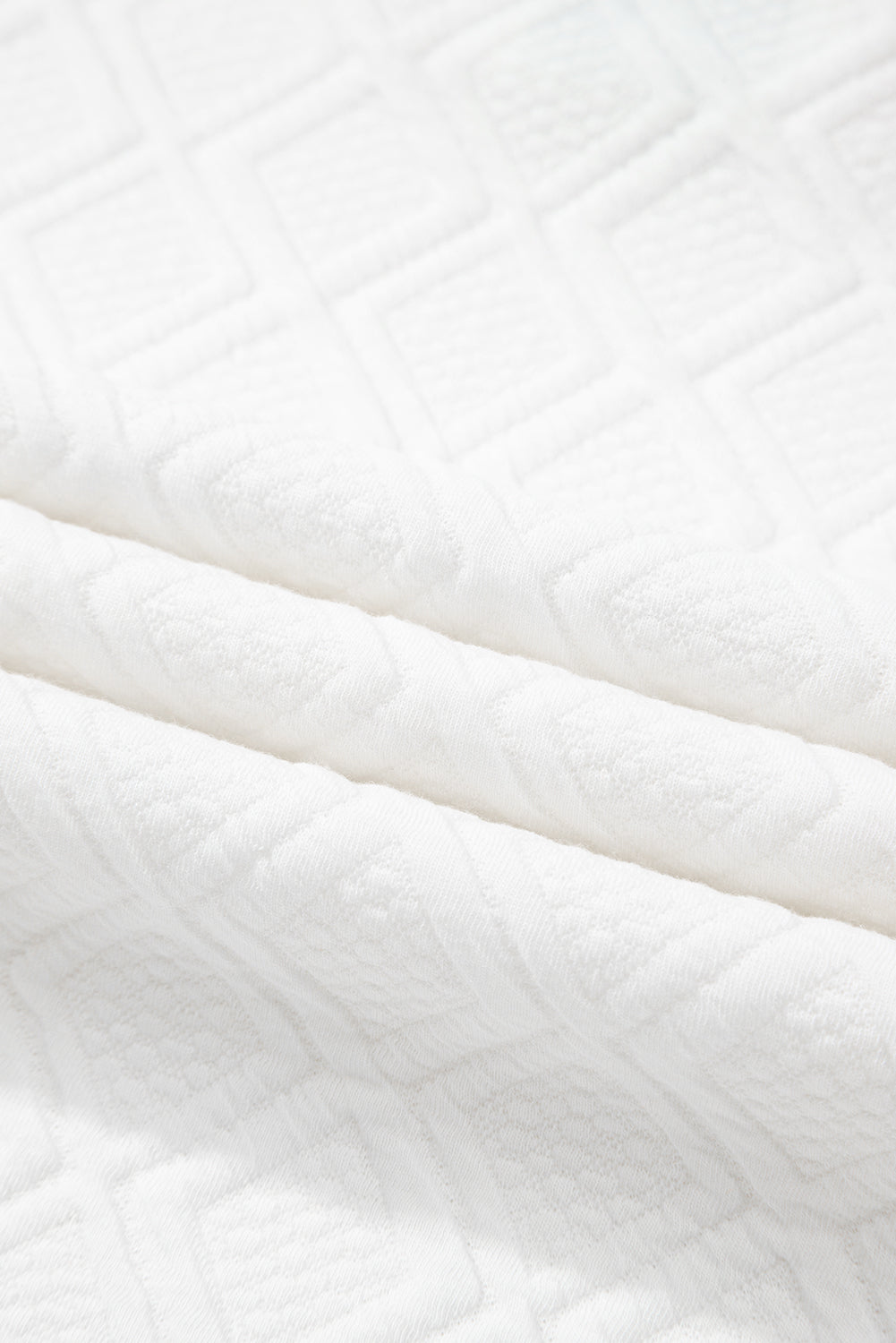 White Textured Jacquard Colorblock Edge Puff Sleeve Quarter Zip Mini Dress